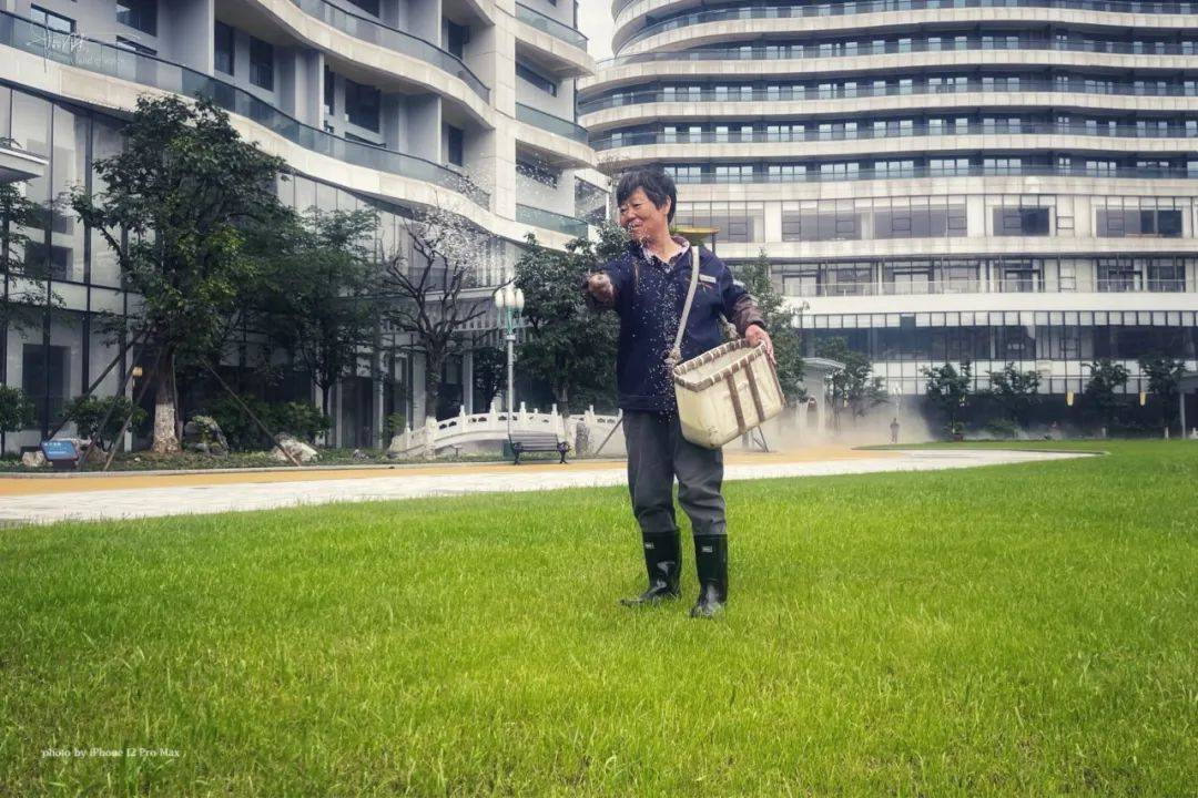 看到两位面相和善的老年夫妻在后花园忙碌,就忍不住上前“采访”一番,原来他们正在维护绿化,往草坪上抛洒的白色颗粒是某种高级肥料,既环保又卫生。