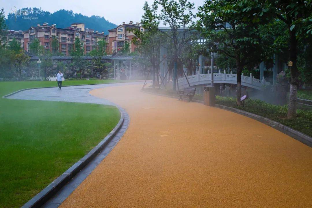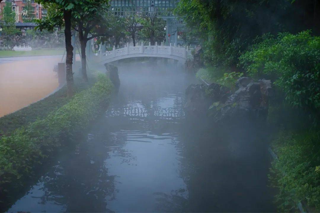 饭后闲暇,在其内部精心打造的“后花园”散步时,竟然被渐渐弥漫开来的云雾氤氲笼罩,朦胧间,小桥流水、亭台楼阁和假山奇石纷纷映入眼帘,氛围恍若仙境一般。而堪称“辽阔”的大草坪,也不慌不忙、郁郁葱葱地展现在我们面前,让人心旷神怡。