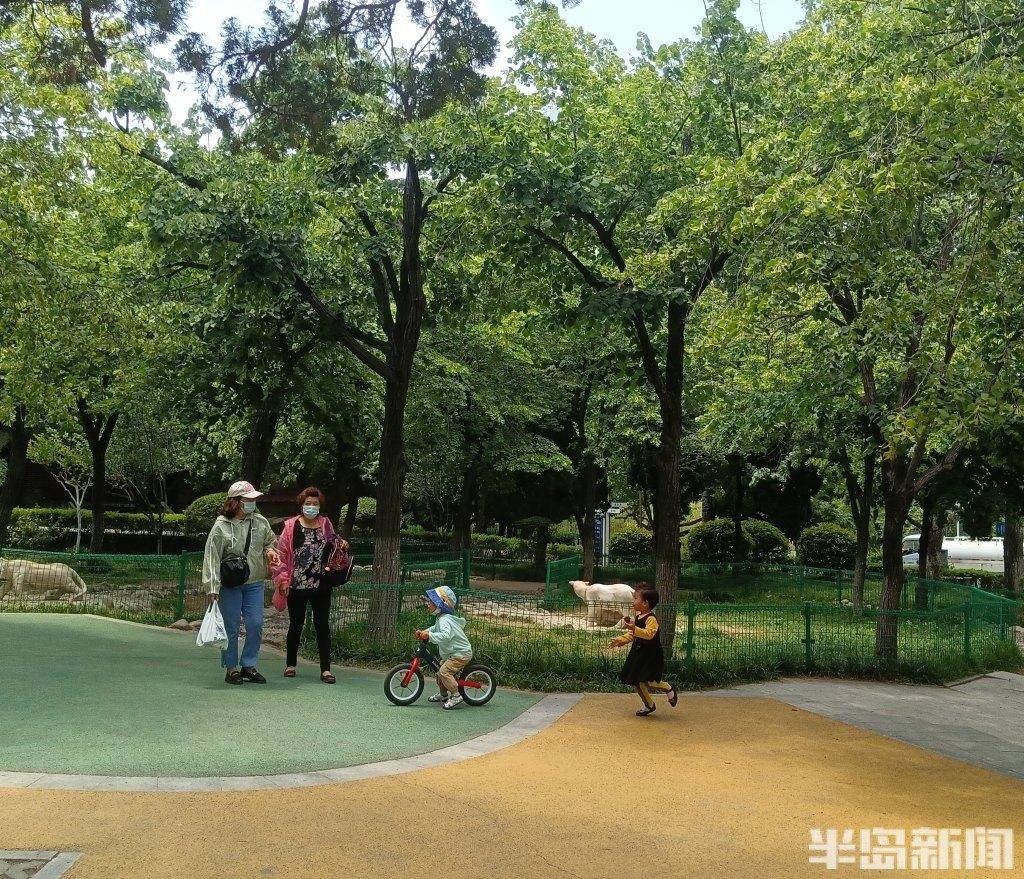 5月26日,记者在市北区贮水山儿童公园看到公园内大型儿童活动设施、雕塑、亭廊、喷泉、阅览室等基础设施十分完善,道路平坦宽阔,铺设了车行道、游览路,不少家长前来遛娃,漫步在天然氧吧中;还有不少老年人在此活动筋骨、打牌娱乐;附近的居民从超市、市场买完菜也过来歇歇脚、话话家常……温馨祥和又不失热闹,欢笑声不断。