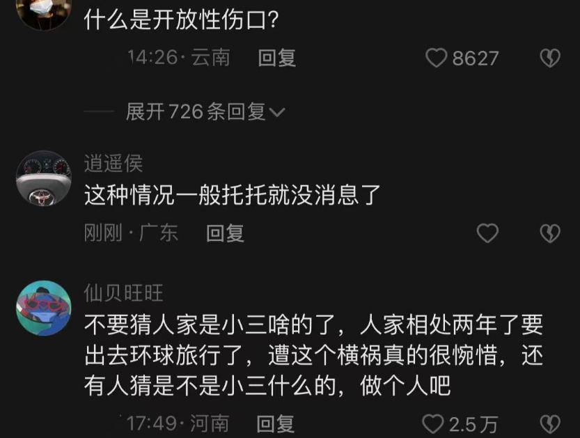 后续医生透露了伤口的细节。原来,身体两侧有11厘米长的“时髦伤口”,背部也有一处伤口。这让网友们很难不认为有人想要得到其中一个器官。