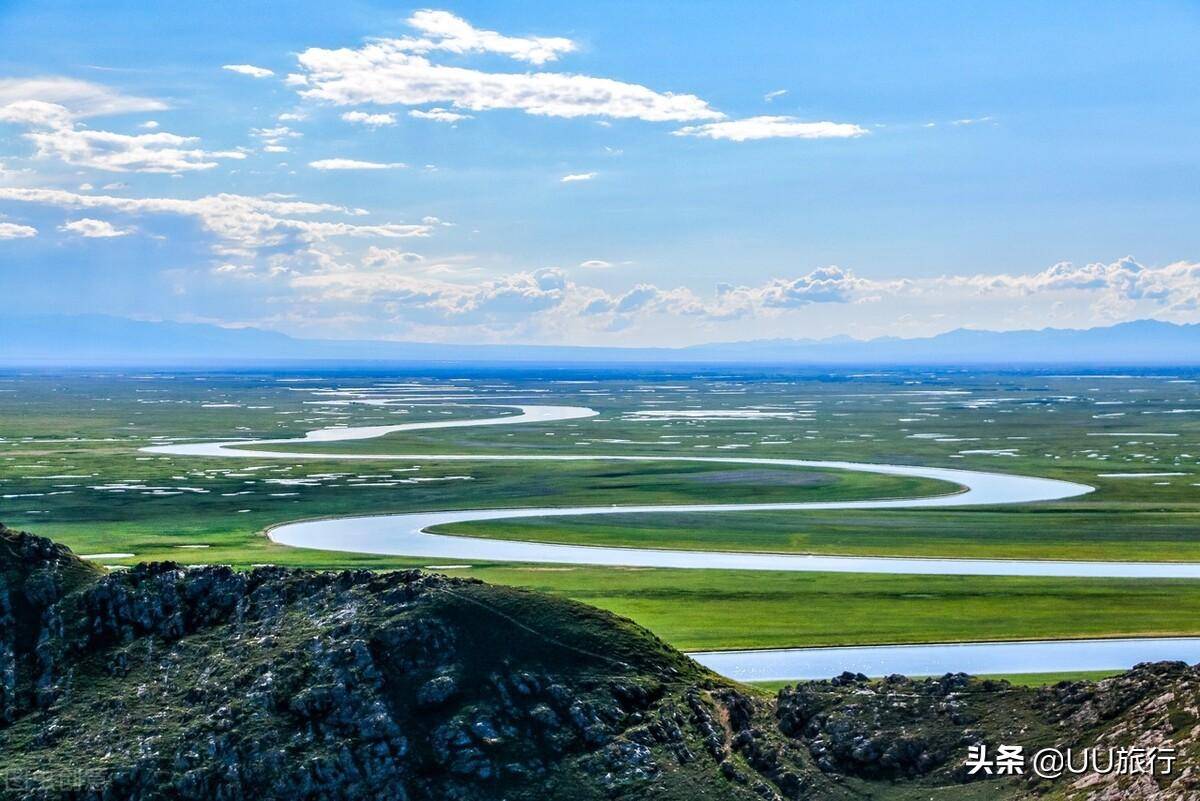 从那拉提空中草原出来,接下来要去的是河谷草原的代表性景观巴音布鲁克。似乎每条河流都是蜿蜒的,九曲十八弯给草原增加了一抹蓝色的妙曼装饰,随着一天中阳光的变化,折射出巴音布鲁克独有的光晕。最佳的露宿点是过了景区大门10公里左右的蒙古包,没有多少喧闹,静听草原的夜晚,看遍漫天的繁星。