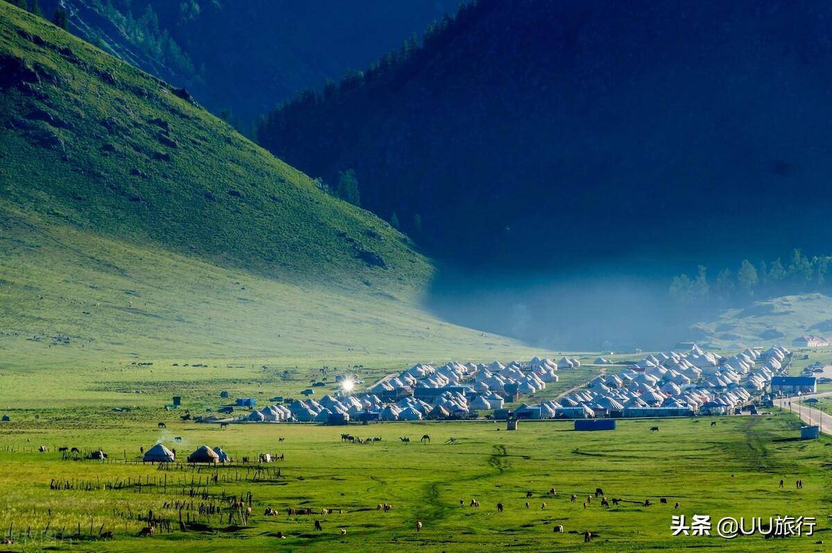 从今天开始,我们便要去往新疆景色最柔美的区域伊犁河谷,从克拉玛依到唐布拉草原之后,开始进入伊犁环线。唐布拉草原也叫做百里画廊,如果正逢独库公路开放,就走独库公路;独库公路封闭后就从奎屯走高速去赛里木湖。唐布拉草原的风景胜在免费,是草原、森林、山谷、溪流相交互的景观。整条路上有很多牧民的毡房民宿、蒙古包民宿可以过夜。