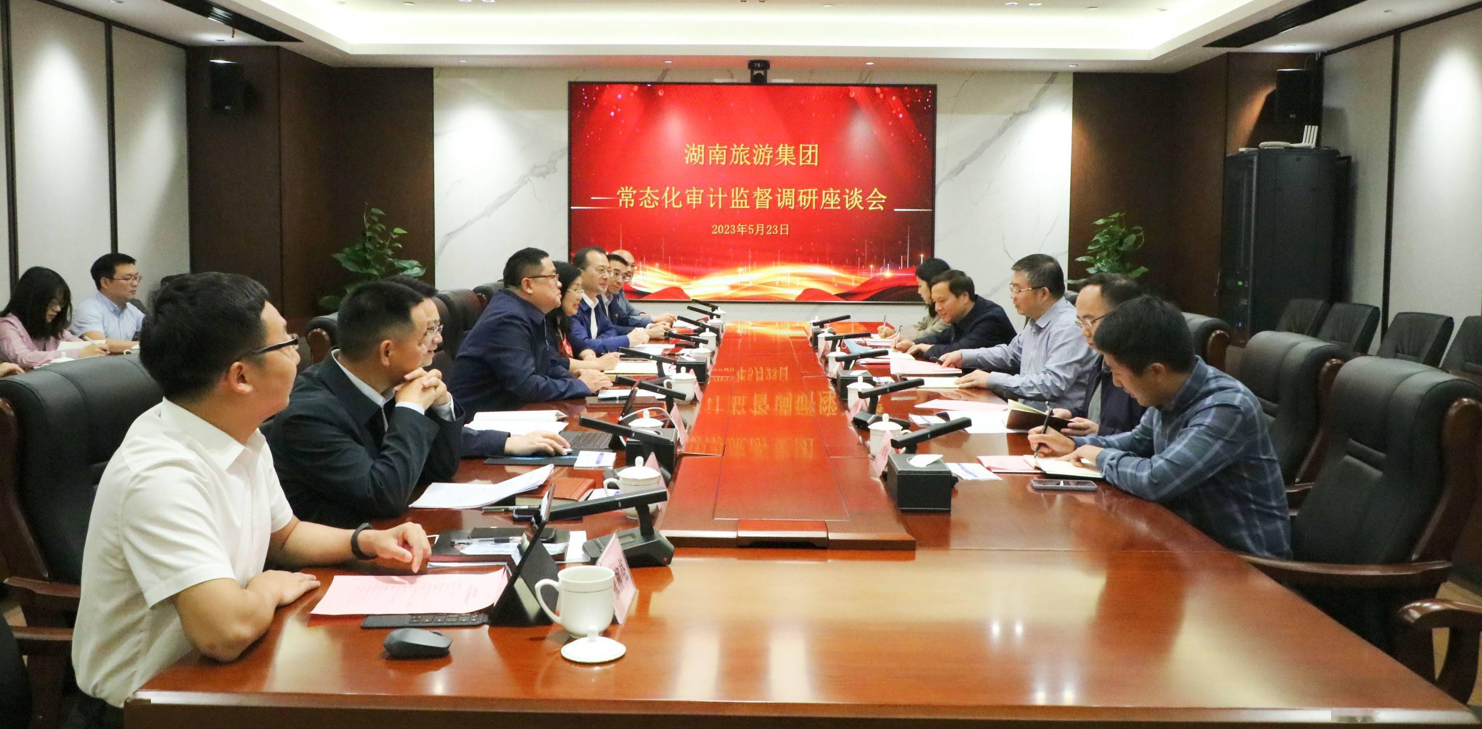 5月23日上午,省审计厅党组成员、副厅长谢军一行到湖南旅游集团开展企业常态化审计监督调研并座谈。集团党委副书记、副董事长、总经理陈华军主持会议,集团党委班子成员尹娥、肖铁勇、闫瑞增参加调研座谈。