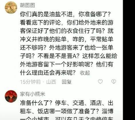 他们想在淄博看到如此火爆的一幕再采取行动,这是不现实的。他们应该利用空闲时间做他们需要做的一切。那样的话,如果其他人来了,有了口碑,还会有更多的游客吗?