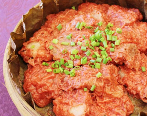 荷叶粉蒸肉是一款享有较高声誉的汉族名菜。在清末,相传其名与西湖十景的曲院风荷有关。它是用当时杭州的鲜荷叶,将炒熟的米粉和经调味的猪肉裹包起来蒸制而成,其味清香,鲜肥软糯而不腻,夏天食用很适合胃口。