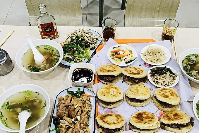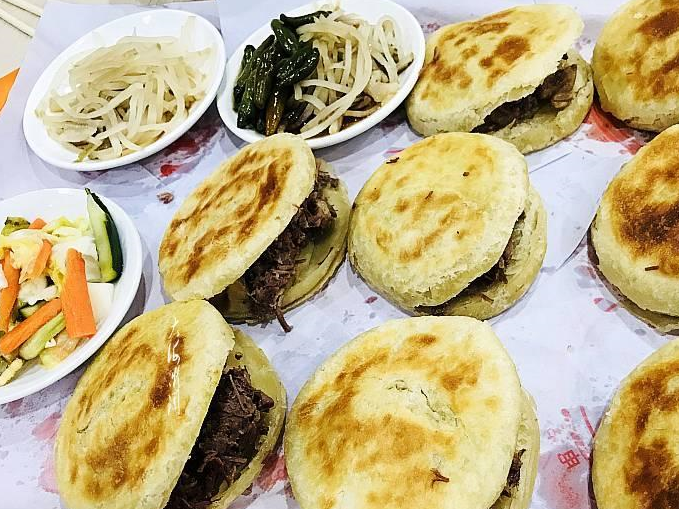 这是上个月同学一起旅游旅途停留在永宁吃过的一餐,老同学说保定这边驴肉火烧很有名,当然不能错过河北这道名小吃,寻了半条街找到驴肉馆,再往前看大大小小的驴肉馆还真不少呢,有的选择,于是奔着一家人多的店去了,进店落座,人多服务员少,小坐一会儿才点上菜,赶了一天的路,刚好也坐下来休息一下,看来喜欢吃驴肉火烧的人还真多,很多人还买着带走,生意的确很火。这一餐4人点2菜一汤,加驴肉火烧,消费160多,味道真心不错,这两道菜都是拼盘,至少有5~6道菜拼在一起,还有小咸菜,不过基本没吃。分享河北名小吃驴肉火烧,太回味,难怪老同学又顺路过去吃早餐,又让我们垂涎欲滴了。