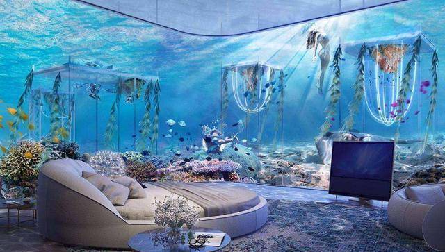 这个10星级酒店也位于迪拜。很多人都知道迪拜有一个帆船酒店,建造于人工岛上,里面非常的豪华,在顶部还有停机坪。然而比帆船酒店更高端的酒店,叫做迪拜海底酒店,位于水下10多米处,走近酒店内,像是来到了海底世界一般,非常的科幻,就像是将科幻小说《海底两万里》之中的描述变为了现实。