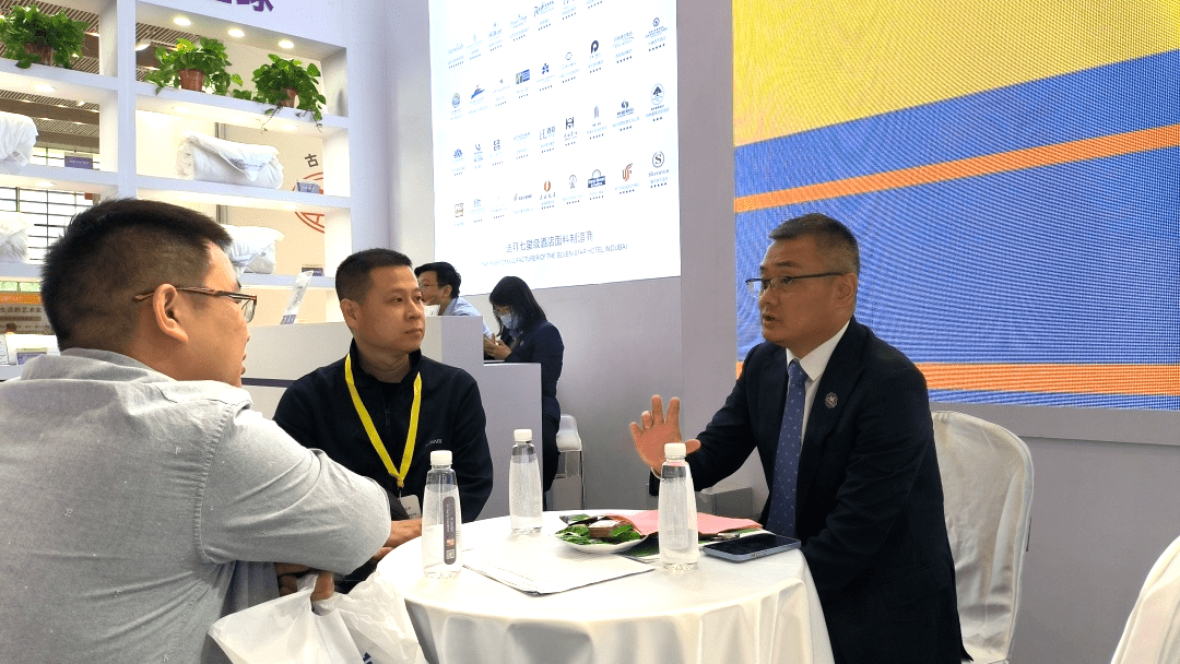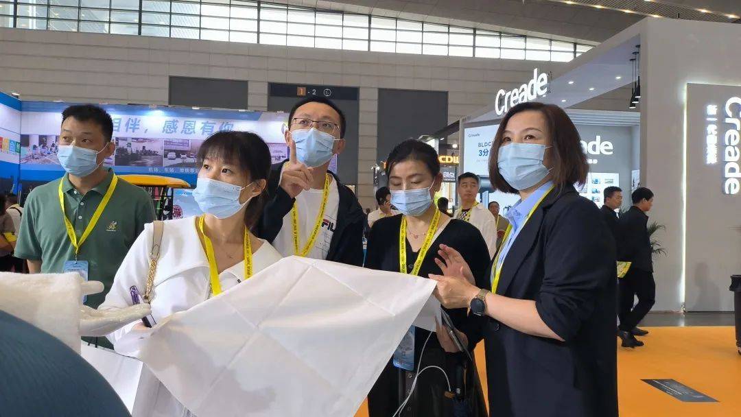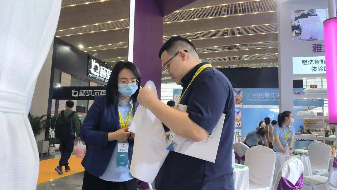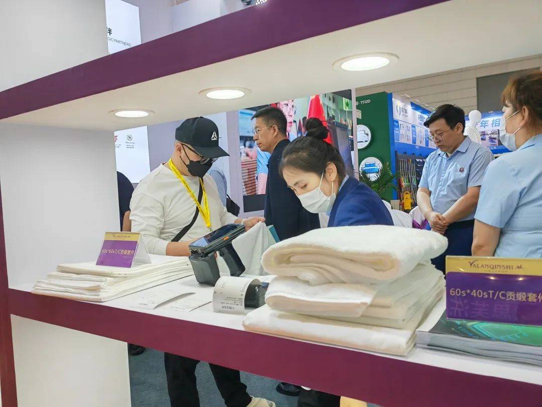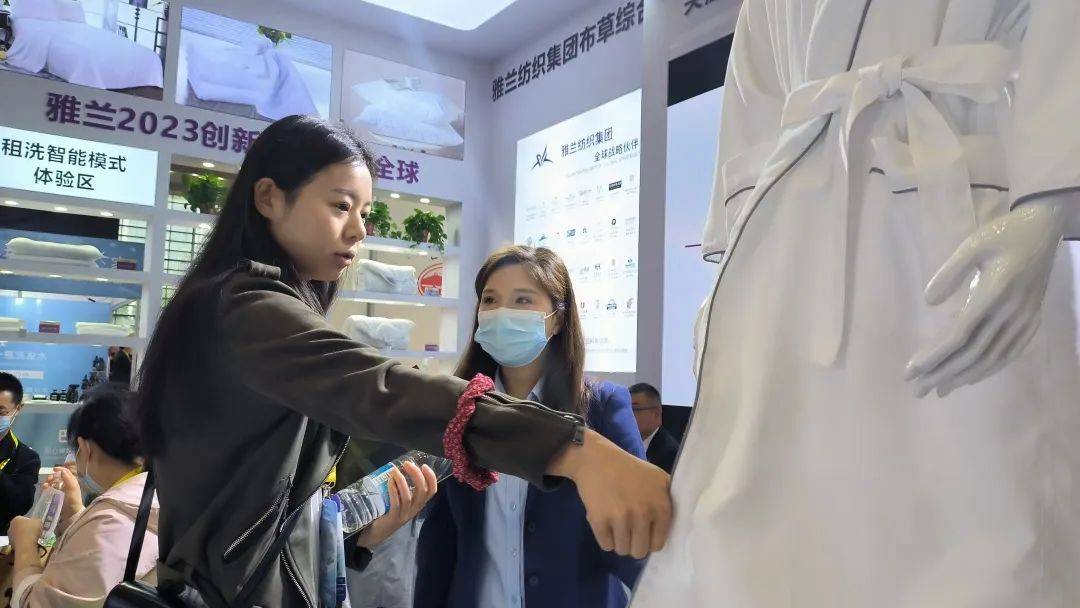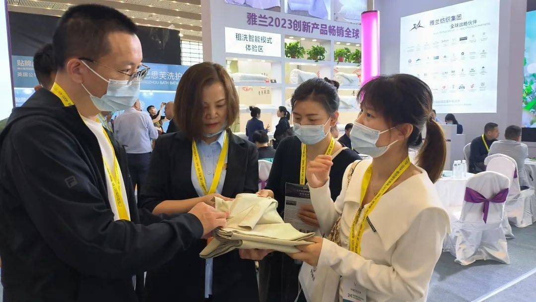 供采面对面,洽谈零距离。现场有采购意向的厂商、经销商和酒店客户直接与雅兰业务人员进行采购洽谈,详谈意向。一些采购商们被雅兰的专利产品和智慧布草所吸引,陆续与雅兰的业务人员相约前往雅兰的产品城市展厅和智能布草工厂进行参观交流,现场人声鼎沸,笑声满堂。