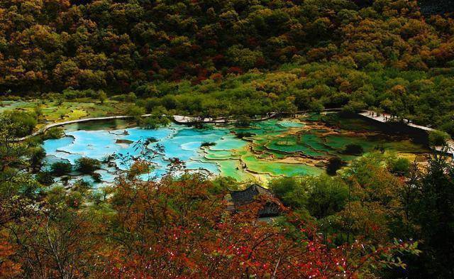 第二天可以再返回汶川途经茂县,然后去松潘旁边的黄龙风景区看看。黄龙也被称之为“小九寨”,这里的自然奇观堪称人间仙境。特别是顶端的五彩池最为奇特,在不同时间,不同天气,不同角度,所呈现出来的颜色都不一样,就像是童话世界中所描述的场景一般。
