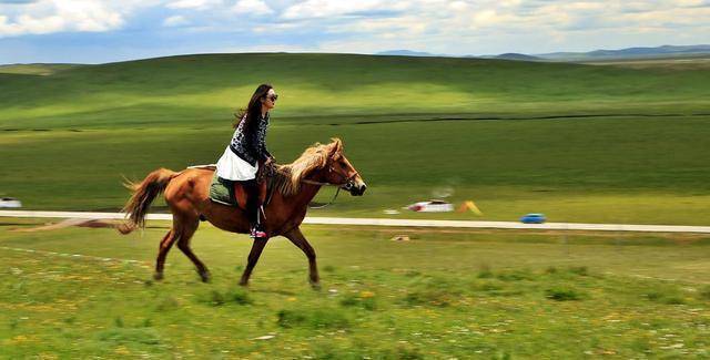 到了大草原,最重要的当然就是策马奔腾。租一匹快马,驰骋在大草原上,好不快活。不过第一次骑马,刚开始不要骑太快,因为实在是太颠簸了,控制不好很容易摔下来。