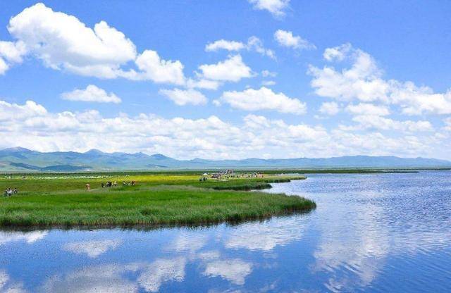 这里是高原草原,与呼伦贝尔大草原风格迥异,站在花海旁边,你会感到离天离水如此亲近,看水天一色,看天空浮云飘飞,美不胜收。