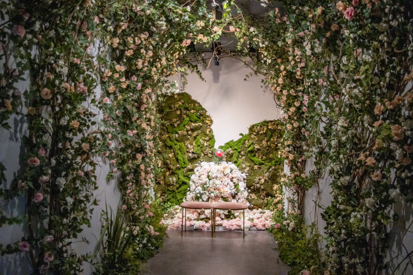 展览里有一个很浪漫的沉浸式的花园适合拍照打卡,花朵的香气从香薰里喷薄而出。