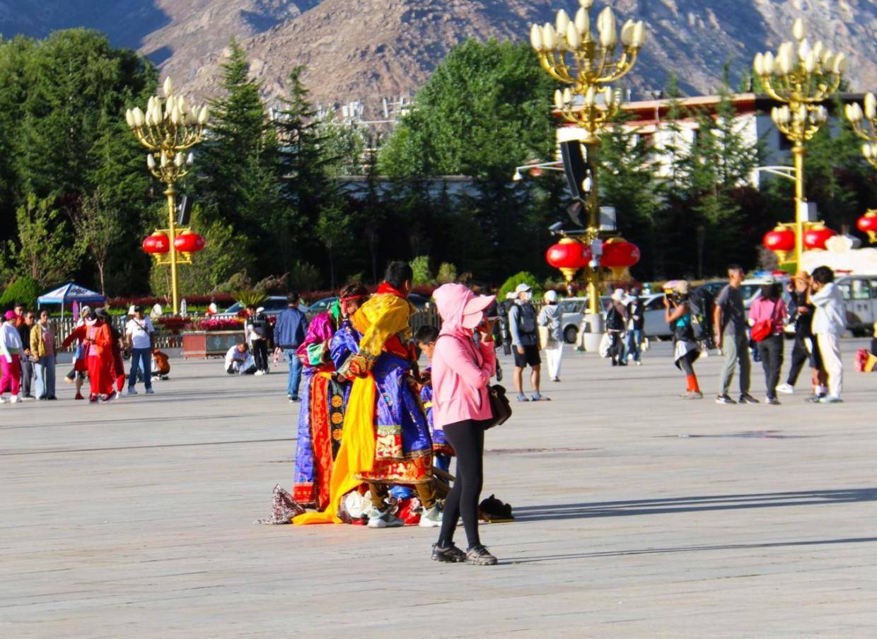 广场上不少的男男女女穿着色彩鲜艳的藏族服饰,以布达拉宫为背景拍着美美的艺术照,也是目前很多少数民族地区旅游项目之一。