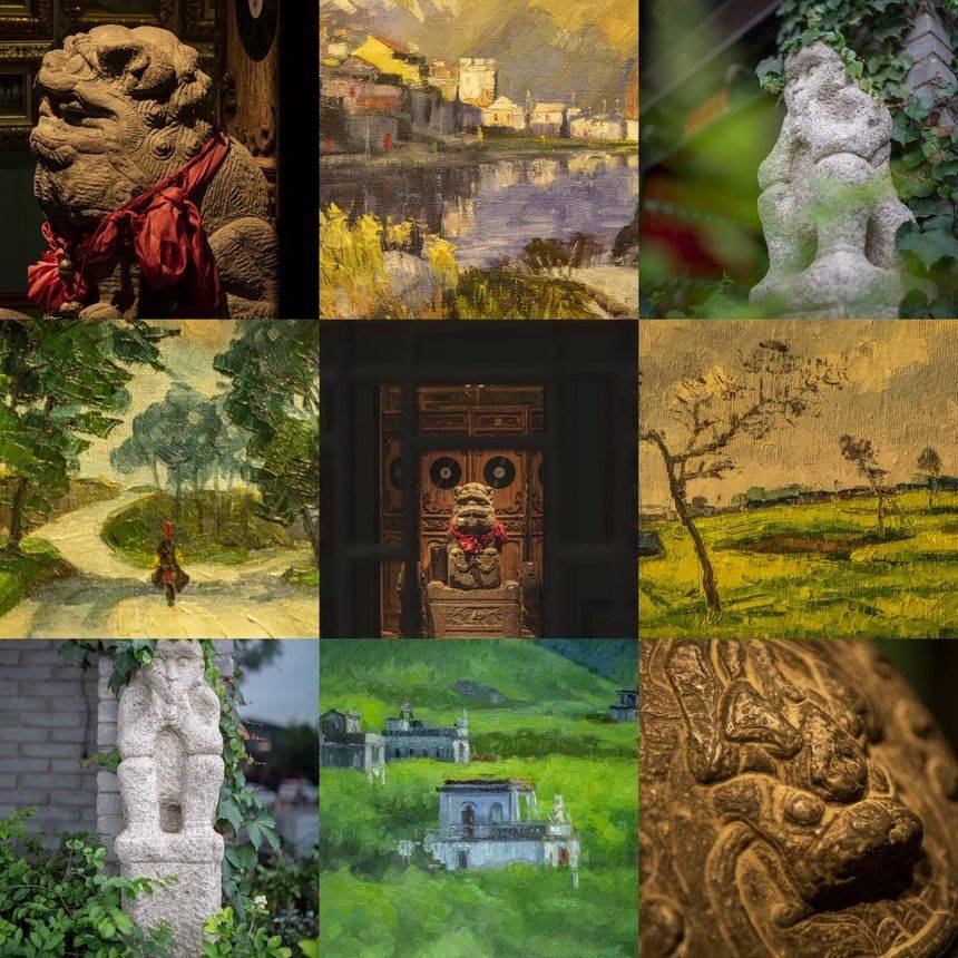 迈过高高的木质门槛,就听见潺潺流水声,在古色古香的氛围中,一台钢琴和一把吉他又格外吸人眼球。由左而入,木屏风、石狮子、黑胶唱片,挡住了浏览视线,三件气质完全不同的物件完美融合在一起。绕过屏风,写意油画和明代的桌子、民国时期的音响等众多老物件完美共存于同一空间。向左望去,金黄的阳光透过玻璃映射到大幅油画上。历史与现代,昏暗与明亮,在整个博物馆里达成一种交融的默契。