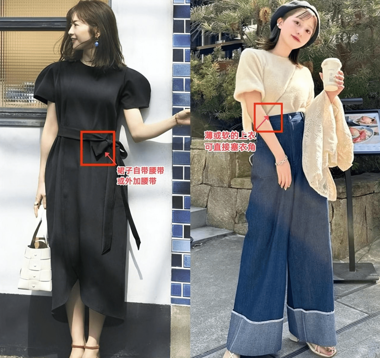 思路②懂得明示出腰线的位置,转移穿搭重心