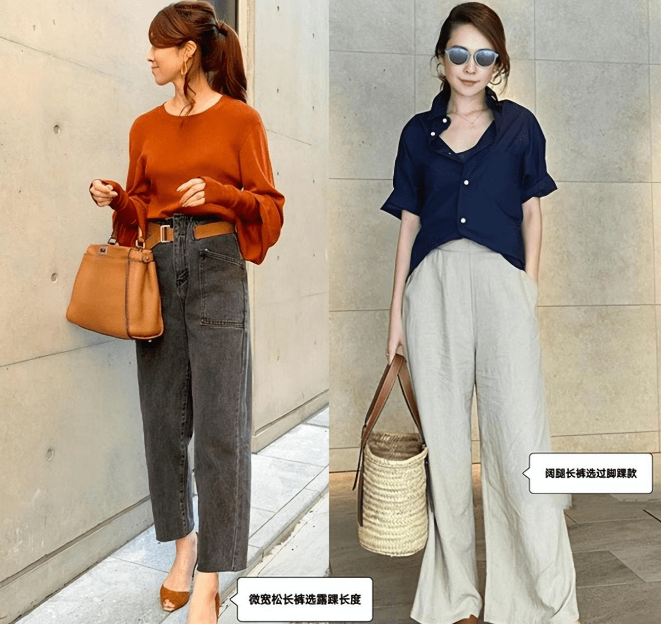 如果你是有曲线的纤细身材,可以利用修身的长裙和长裤来强调曲线,这样搭配上长裤显高的同时还会因为紧致感塑造显瘦的穿搭效果,这样一来不存在矮胖的视觉效果了。