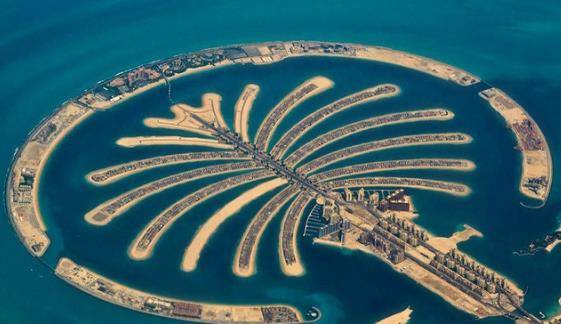 迪拜棕榈岛项目自2001年开工,直至如今仍是全人类有史以来最大的一个陆地改造项目。而这个棕榈岛其实也并非一个岛屿,它本意是由4个岛屿共同构成,因为外形酷似棕榈树,所以起名为棕榈岛,再加上一个缩小版的世界地图。