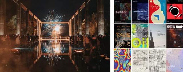 2020年12月31日AURUA艺文祭装置点火现场、辞旧迎新;往期音乐厂牌活动海报(右)