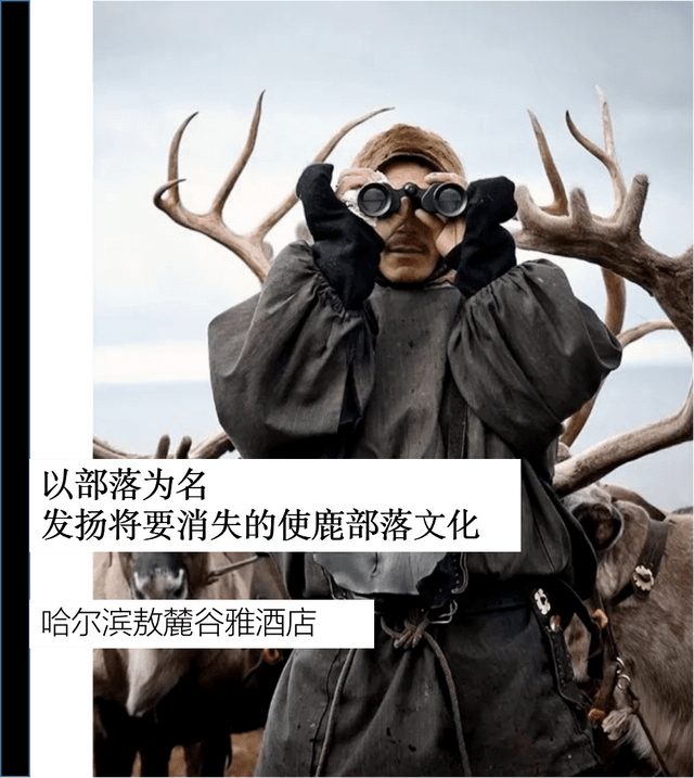 说到与老酋长玛利亚·索的结缘,余广智先生表示,2012年隆冬时节的那场寒地穿越,在冰天雪地的密林中,与老酋长初见时的画面,时至今日依然印象深刻。“唯自然而大美,因返璞而归真”,古老而神秘的鄂温克使鹿文化,让余广智先生深受启发:“远离繁华喧嚣的都市,没有恣意横流的物欲,也没有急功近利的浮躁。以玛利亚索老人为代表的敖鲁古雅人,享受着自然的静谧和丰饶,与大自然和谐相处,过着简单、纯粹的生活。于是,我们将‘敖鲁古雅’还原到北方都市中,创立敖麓谷雅AOLUGUYA品牌,建造了哈尔滨敖麓谷雅AOLUGUYA酒店,为都市里繁忙的人们提供一席静谧的心灵归宿。”