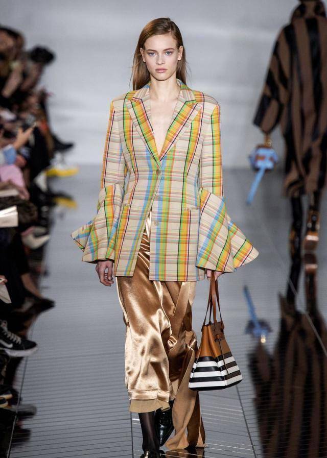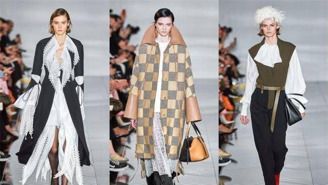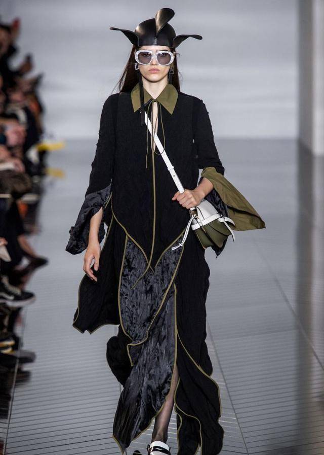 撇开理论,Loewe2019秋冬,又是一个要人荷包失守的系列。各色裁剪精准的大衣,以Jonathan最擅长的材质拼接手法呈现,其中以运用上拼接皮革的款式,不仅能够体现品牌精神,也是非常值得投资的单品。而许多律动感极佳的不对称剪裁洋装,以丝绸、蕾丝或薄纱呈现,是造型上能够与刚硬的外套线条做出对比的必要呈现。有态度、有观点,恰到好处的艺术气息与对女性穿着的尊重,也是让Loewe的服装成为好感度极佳的重要特质。要美、要帅,都能在这里找到一方天地。