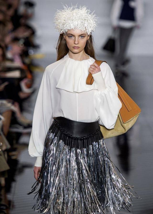 Loewe玩转了“戏服”和“时装”的模糊界线。明明每一个复古元素都是那么浮夸,却完美地将简约的剪裁与材质,点缀成更典雅的模样。配色更以大地色系与黑白灰为基调,每一件设计都可以是女孩日常衣橱中的一件百搭款。当然啦,这是在说除了那两顶粉色和黄色的“鲨鱼帽”之外的款式,现在就要开始思认真考了,这两顶帽子到底要怎么搭配才好看。