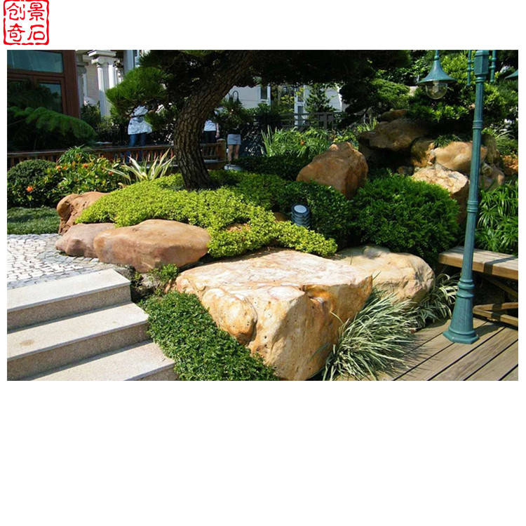夏日的清凉与黄蜡石匠心搭配,形成一个美妙布局,让人心旷神怡,沉醉在黄蜡石假山中。