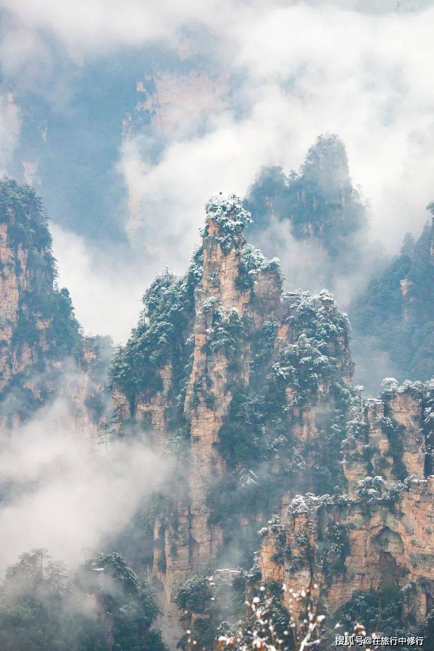 到了冬季,硬朗震撼的张家界,因为薄薄一层白雪则多了一份空灵感。
