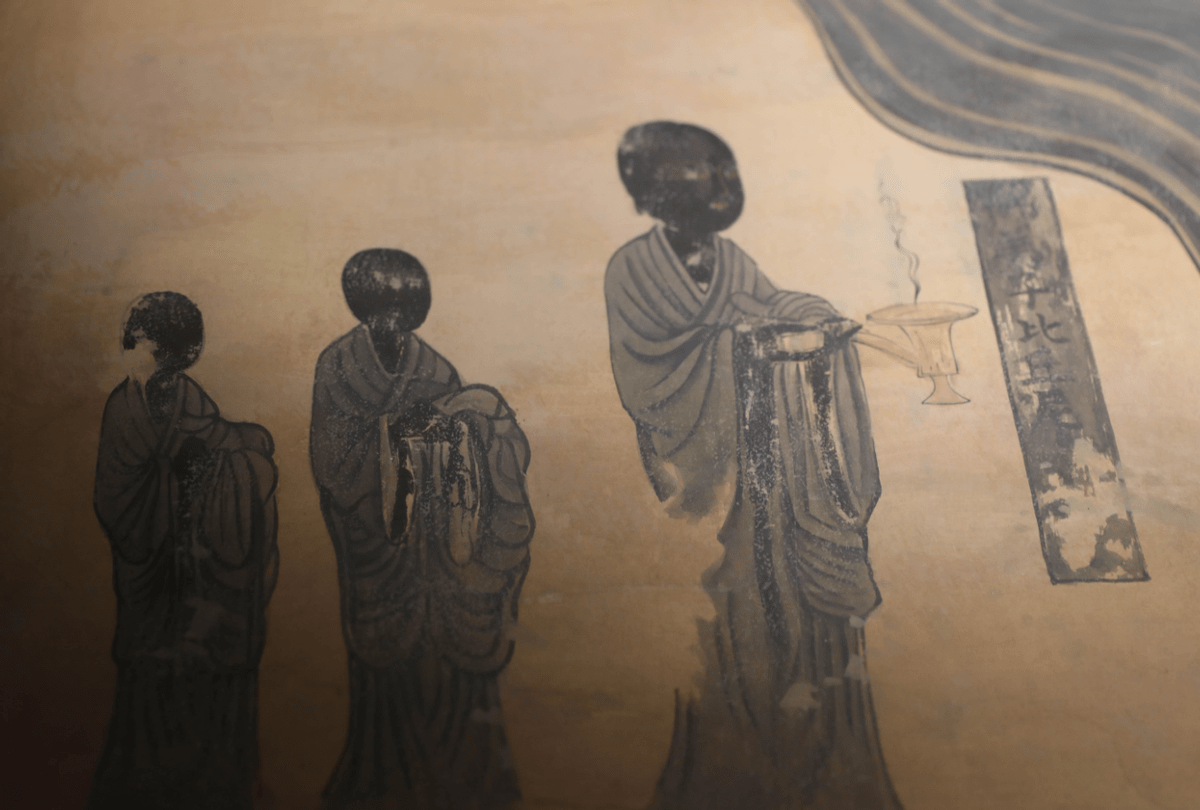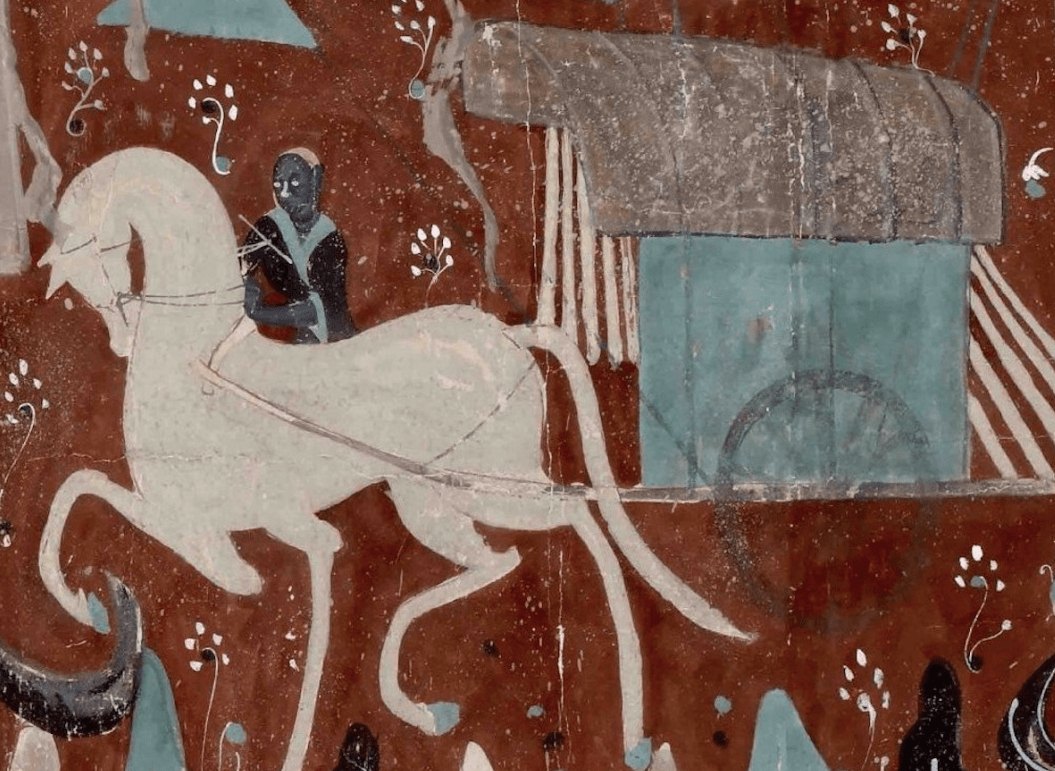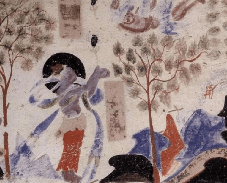 佛经中虽没有关于这一画面的记载,但画师在根据佛经文本创作壁画的过程中,创造性地绘制这一画面。