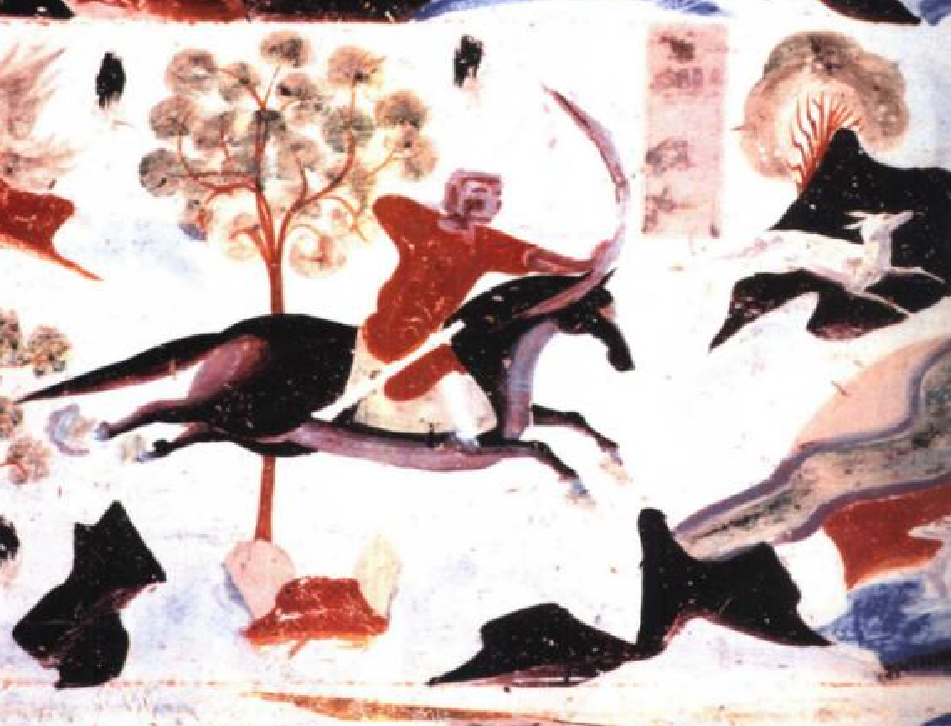 隋代在绘画史上中有很多创举,也显现在本生画的发展历程中。以隋代为分界点,隋代以前的敦煌早期本生故事画,带有西域式古拙、豪放热烈的西域式画法特征。