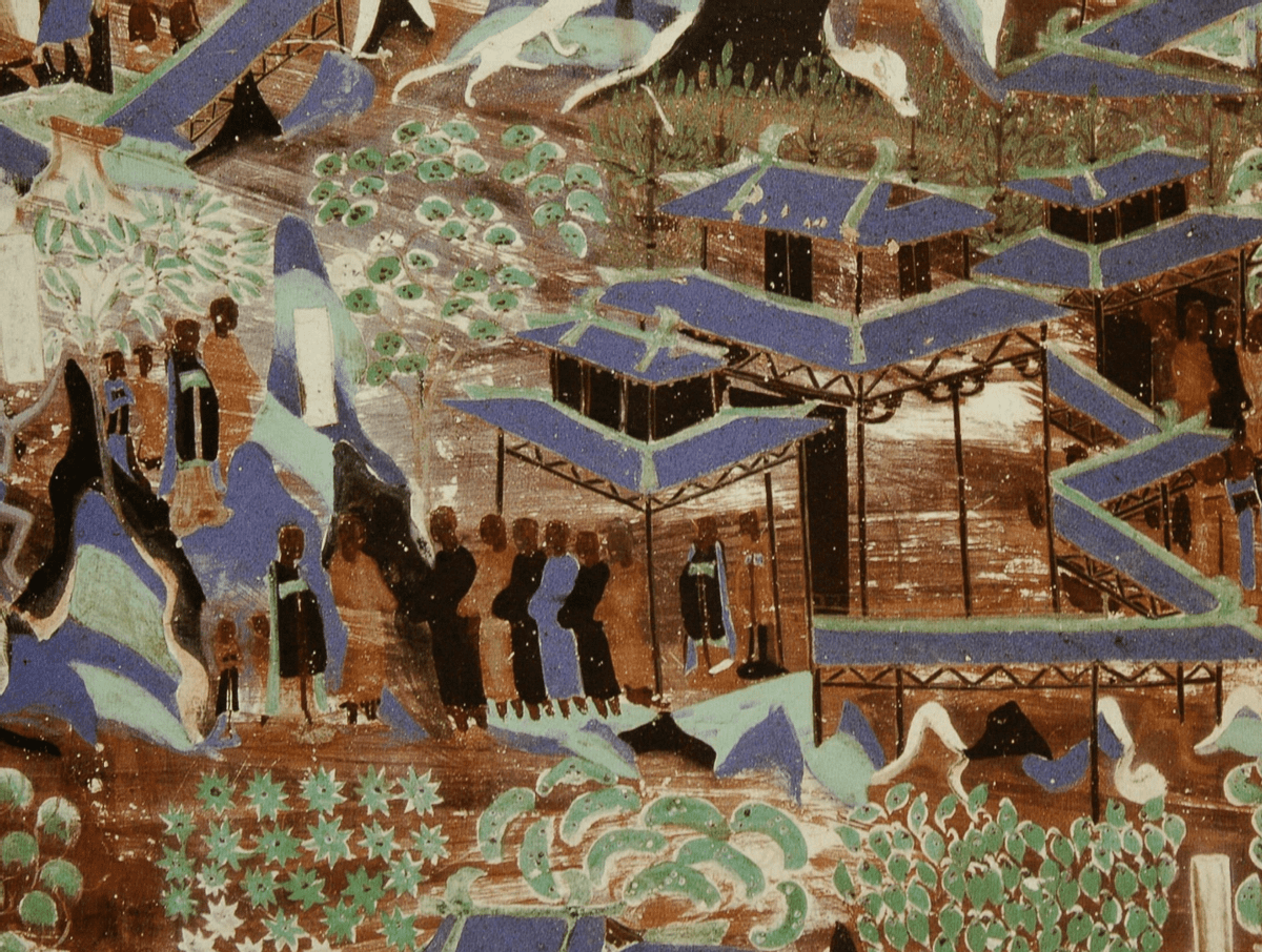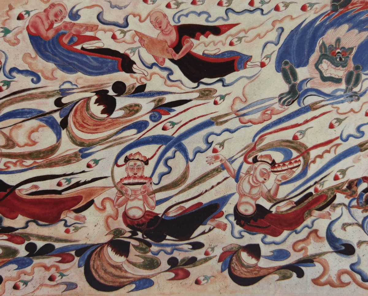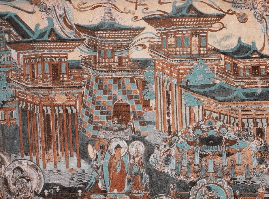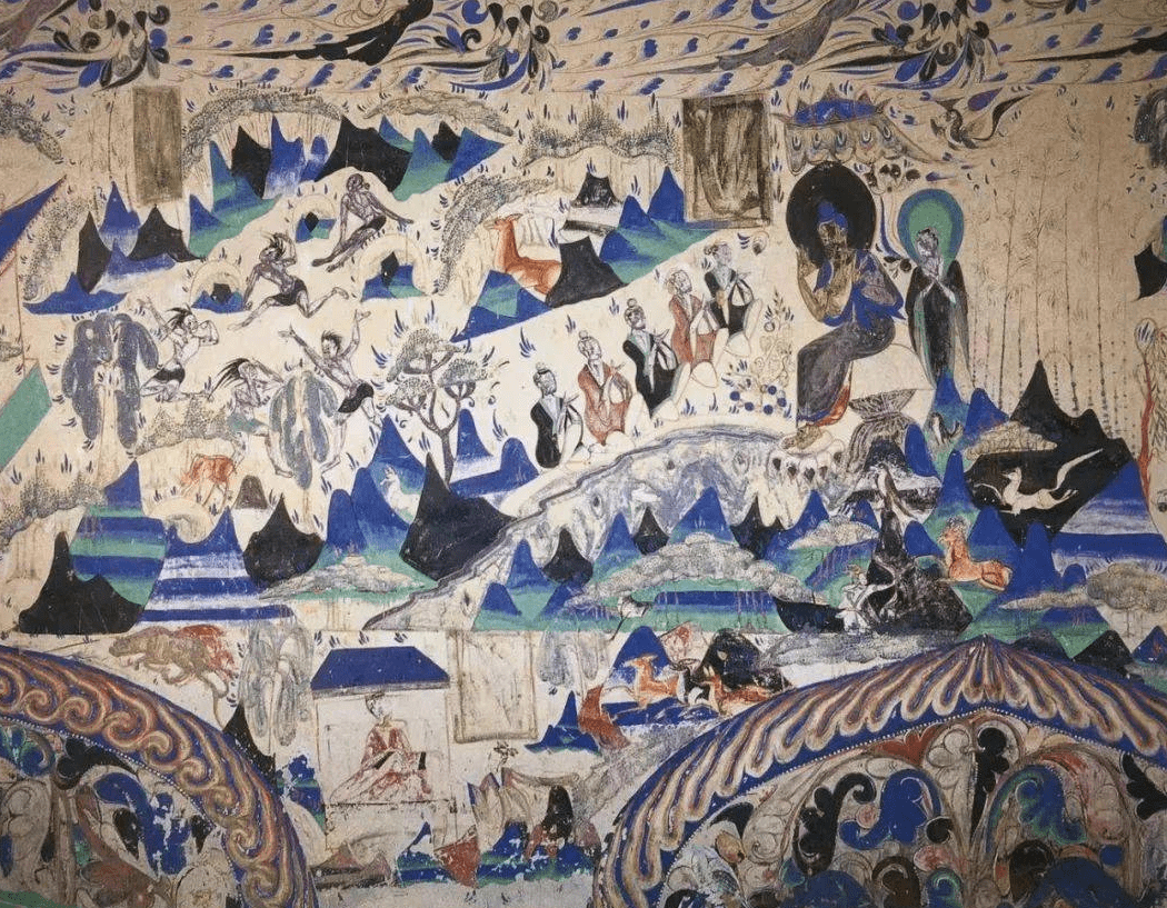 但是长卷式故事画在隋代进入尾声,隋末唐初以后逐渐被大型经变画所取代。经变画的繁荣发展,使得莫高窟几乎全绘制着大型经变画。