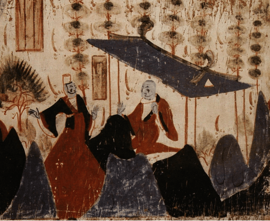 整体风格与画史中描述的展子虔、郑法士为主的“细密而臻丽”的技法相似,由此可以看出我国中原地区艺术风格绘对隋朝时期壁画艺术创作的影响。