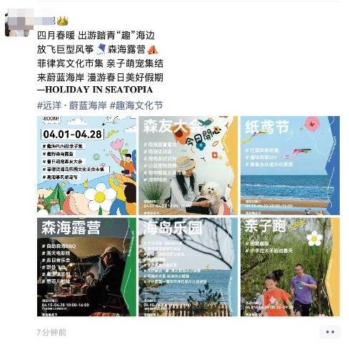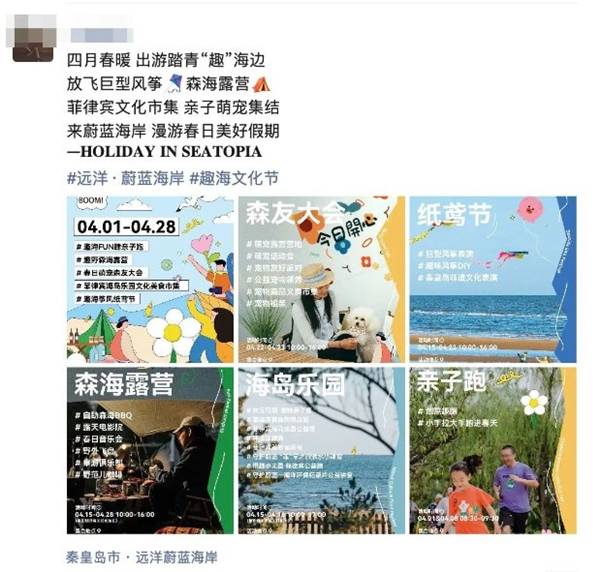 第四阶段:结合“双微一抖”不同社媒平台的生态特点针对性输出营销内容,充分联动闻旅、蔚蓝海岸等资源,精准覆盖100+社群,并以各类低门槛轻互动促进参与,实现话题叠加炒热效应最大化和圈层目标触达精准化。