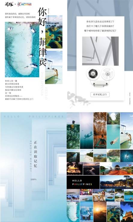 第一阶段:怀旧—情绪触发:通过微博和H5发起#你好菲律宾#话题,征集关于菲律宾记忆的照片和物件,深刻洞察具有高认知度的菲律宾旅行记忆,燃点用户情绪。同时发起关于菲律宾旅行洞察问卷,优质内容情感触达;微信有奖征集、社群话题互动等丰富形式,不断输出菲律宾旅行话题。