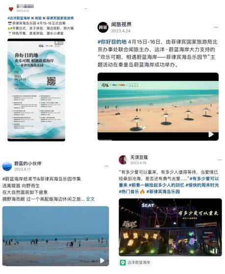 整个活动吸引旅行垂类KOL以及到访过菲律宾的KOC共300多人参与,线上线下收集5000多份调查问卷。通过微信、微博、小红书、抖音、绿洲、美图秀秀等众多平台推广资源,其中微信端传播曝光量突破百万级,微博端活动期间相关阅读量突破千万级。此外,传统渠道覆盖以京津冀为主要区域的重点媒体近百家。