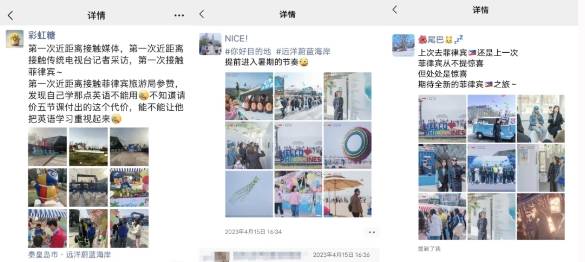 第二阶段:利用话题热度,将回归主题传播素材以及回忆主题活动有机串联起来,形成快速曝光—强势聚集—长尾沉淀。通过回忆系列主题话题炒热,重燃用户对菲律宾目的地的期待,增进用户与菲律宾的情感链接。与此同时,通过在蔚蓝海岸的官微、社群、业主群等不断发布菲律宾相关旅游体验等精准触达未来想要出国旅行的用户,第一时间种草。