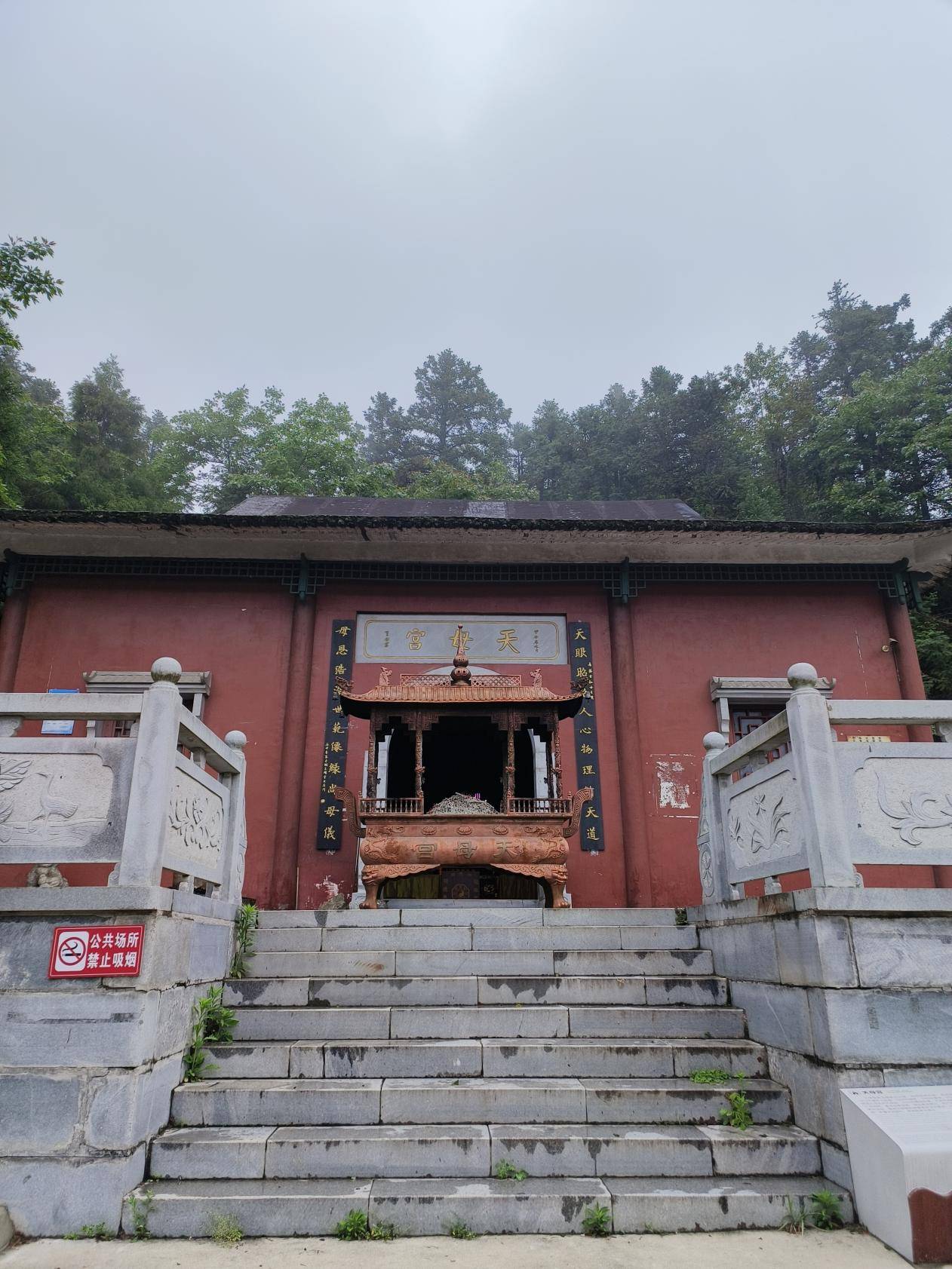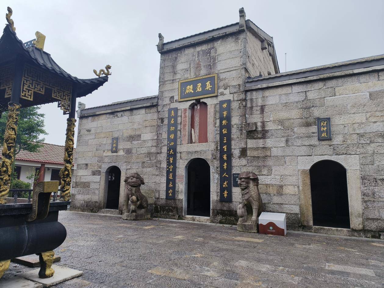 再往上是祖师殿,祖师殿位于大云山东部顶峰,海拔909米,始建于唐代,供真武大帝和石光祖师。多次重修,如今见到的建筑多是后期改建,石板与石柱部分为古代物件。