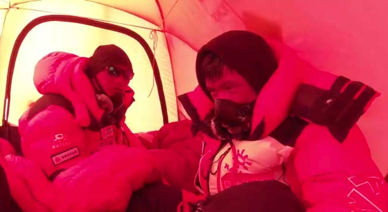 时间拨回至冲顶珠峰前那一天,尼泊尔当地时间5月18日晚,在海拔7950米的珠峰南坡C4营地。湖南省登山队领队范江涛按计划开始最后的冲顶,和他一同出发的,还有队友鲁明勇和刘燕。三人各自有一名当地专业登山指导人员“夏尔巴”同行。