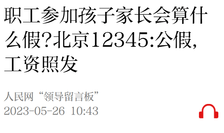 北京通州这位网民5月11日在人民网“领导留言板”留言称,职工参加学生家长会算什么假?能作公假吗?具体有明文规定吗?如果用人单位不算公假怎么办?