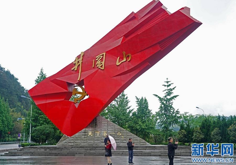 游客在江西省井冈山市参观“井冈红旗”雕塑。新华社记者 万象 摄