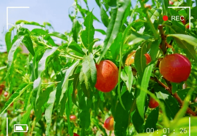 枝繁叶茂的桃树间,红彤彤的、黄灿灿的油桃沉甸甸的挂在在绿叶中,乍一看,像是一盏盏明亮的灯笼;仔细瞅瞅,又像小朋友稚嫩明亮、光滑细腻的笑脸,让人忍俊不禁。