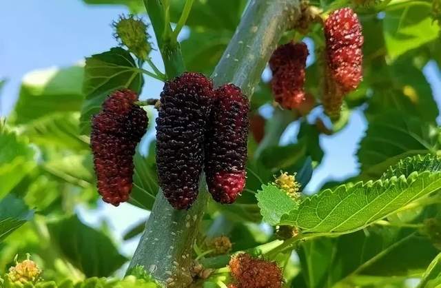 几轮丰沛的雨水后,桑葚树上也早已硕果累累,紫红乌亮的色泽,颗粒又十分饱满。成熟的长果多汁可口,短果酸甜开胃,预计五月中下旬便结束了最佳赏味期,爱吃的小伙伴千万别错过!