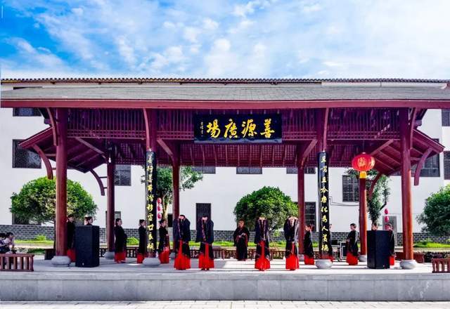 走在善源谷中,孝善文化的痕迹处处可见。善源广场上,典雅的汉服裙袂随古乐而纷飞,白玉石桥上,二十四孝文化长廊刻画出浓浓的孝善情。