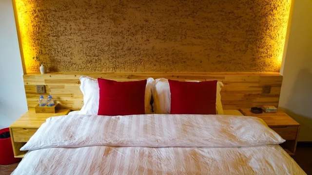 民宿独处于山间,就地取材,将石块砌成墙面,手工木质打造的家具低调却富有内涵,各种小细节都让人惊喜。