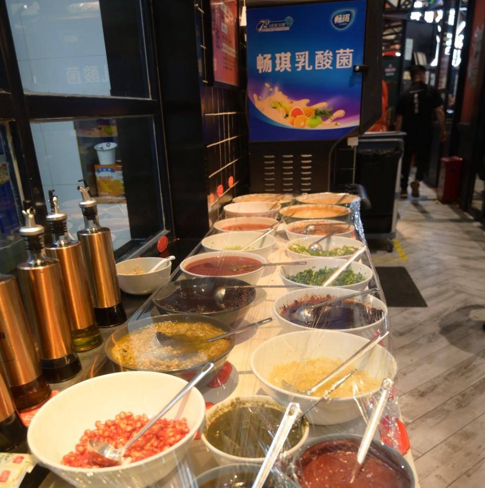 在酒店的小料自取吧台,使用过的小料都用保鲜膜做了封膜处理,防止灰尘层等杂物掉入其内。“我们力求每一个细节都做到标准化、精细化管理,在保证食品安全的同时为消费者提供健康营养的美味。”