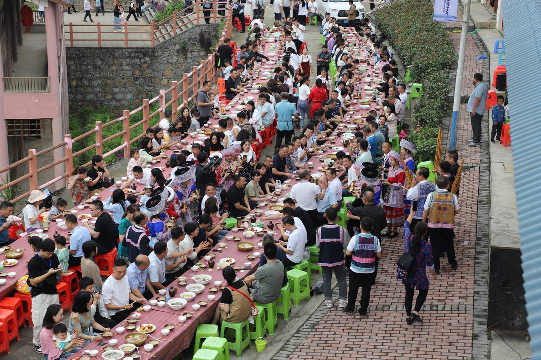 开幕式上,下火海、吐火等苗族特色节目精彩上演,现场掌声连连。在“徒手抓鱼、戏水狂欢”活动中,游客们脱掉鞋子、挽起袖子,在水里体验抓鱼乐趣,热闹非凡。活动还结合麒麟苗族乡的民族优势,举办了一场120桌特色苗家长桌宴,向游客品尝地方特色美食,体验特色苗家迎宾酒、“高山流水”敬酒礼仪等,感受苗族礼仪风情。