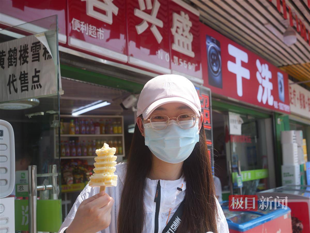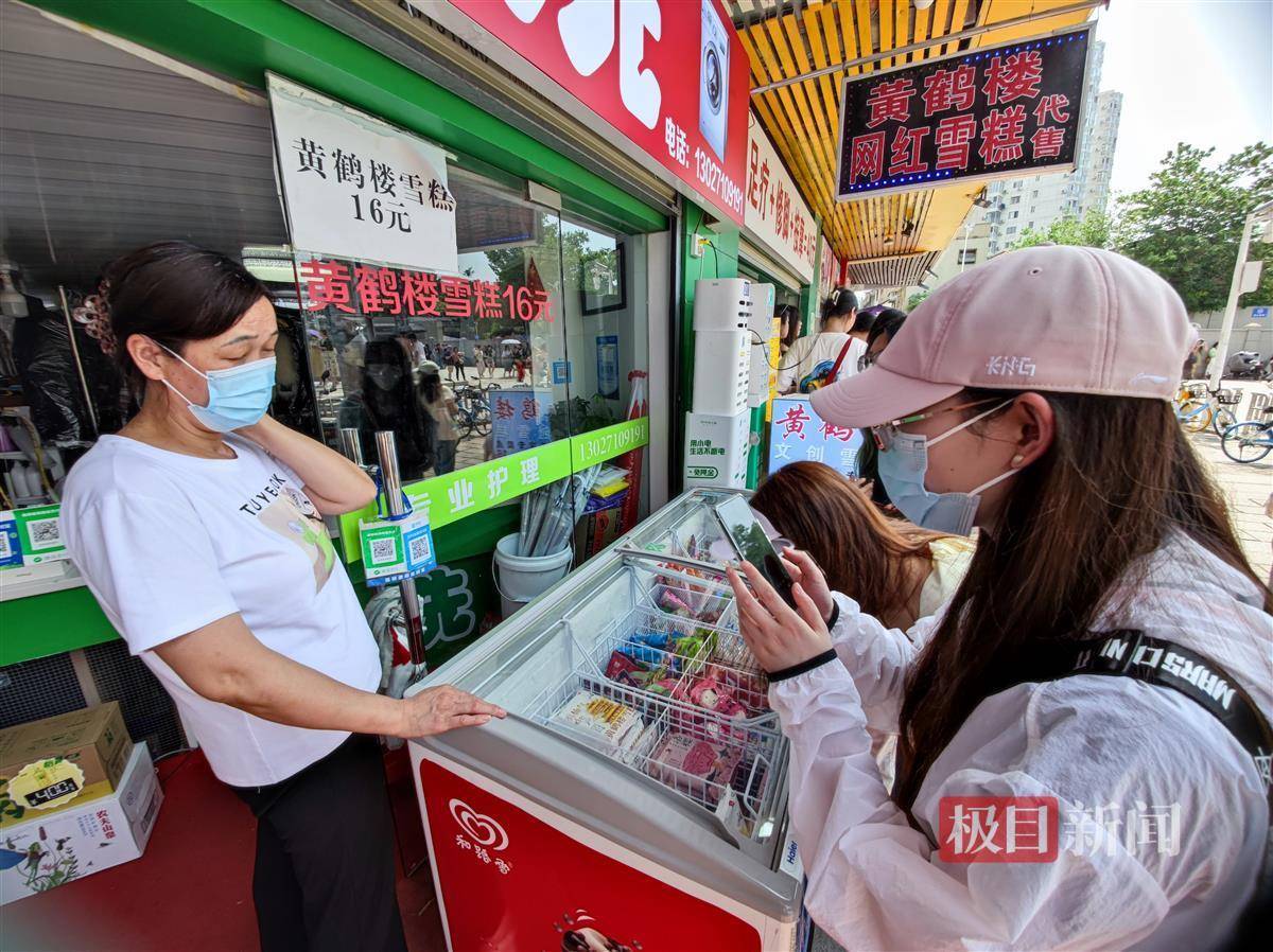 5月27日,恰逢周末,500米长的青龙巷上游客络绎不绝。极目新闻记者在现场看到,位于巷口的副食店生意最好,不少游客在此购买黄鹤楼造型的冰激凌,然后转身与“故宫同款”红墙合影。
