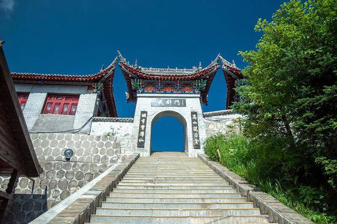 上山除了攀登石阶外,还可以乘坐一段距离的缆车,登山虽累,待到了山顶高处时的风光一定会让你觉着不虚此行。