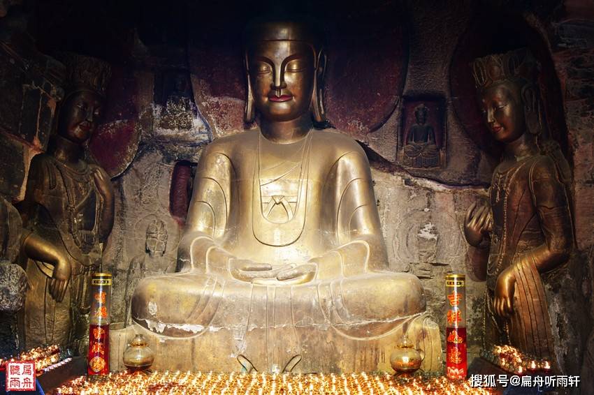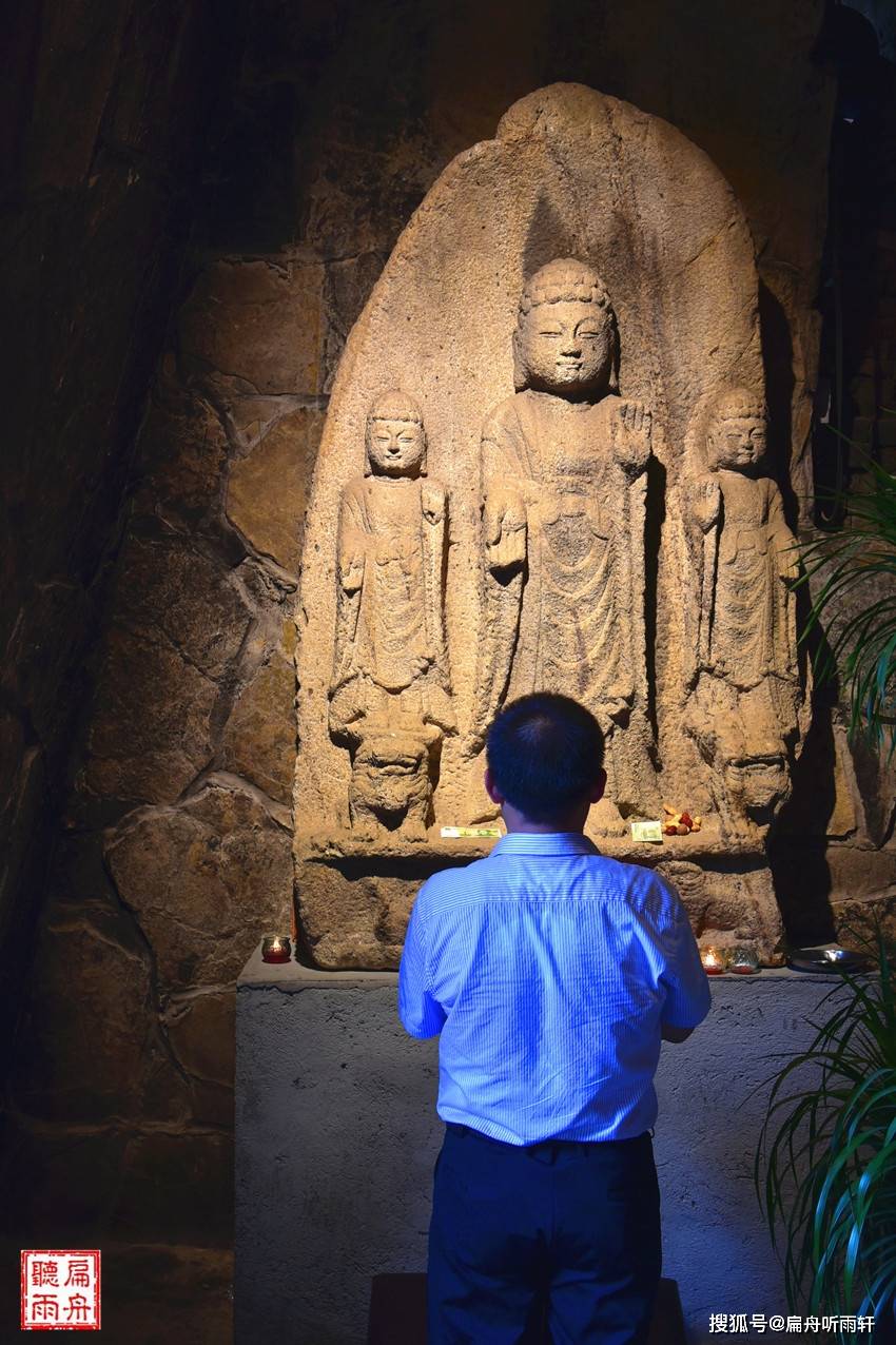 在一众古迹之中,下面这个洞窟里供奉的这尊造像,怎么看,都像是现代人,从造像的神态到气质都有点与众不同。呵呵,它居然是一户当代人家捐赠的作品。