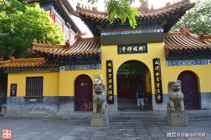 兴国禅寺正门朝西,大门两侧刻有一副对联:“暮鼓晨钟惊醒世间名利客;经声佛号唤回苦海梦迷人”,意思是说,人世间追求功名利禄的人会被寺院的晨钟暮鼓所惊醒,抛弃名利欲望,而在人海中苦苦追寻的人也会被经声佛号唤回来。