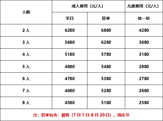 注:行程内时间都为计划时间,如遇暴雨、堵车等情况,具体行程由领队安排。